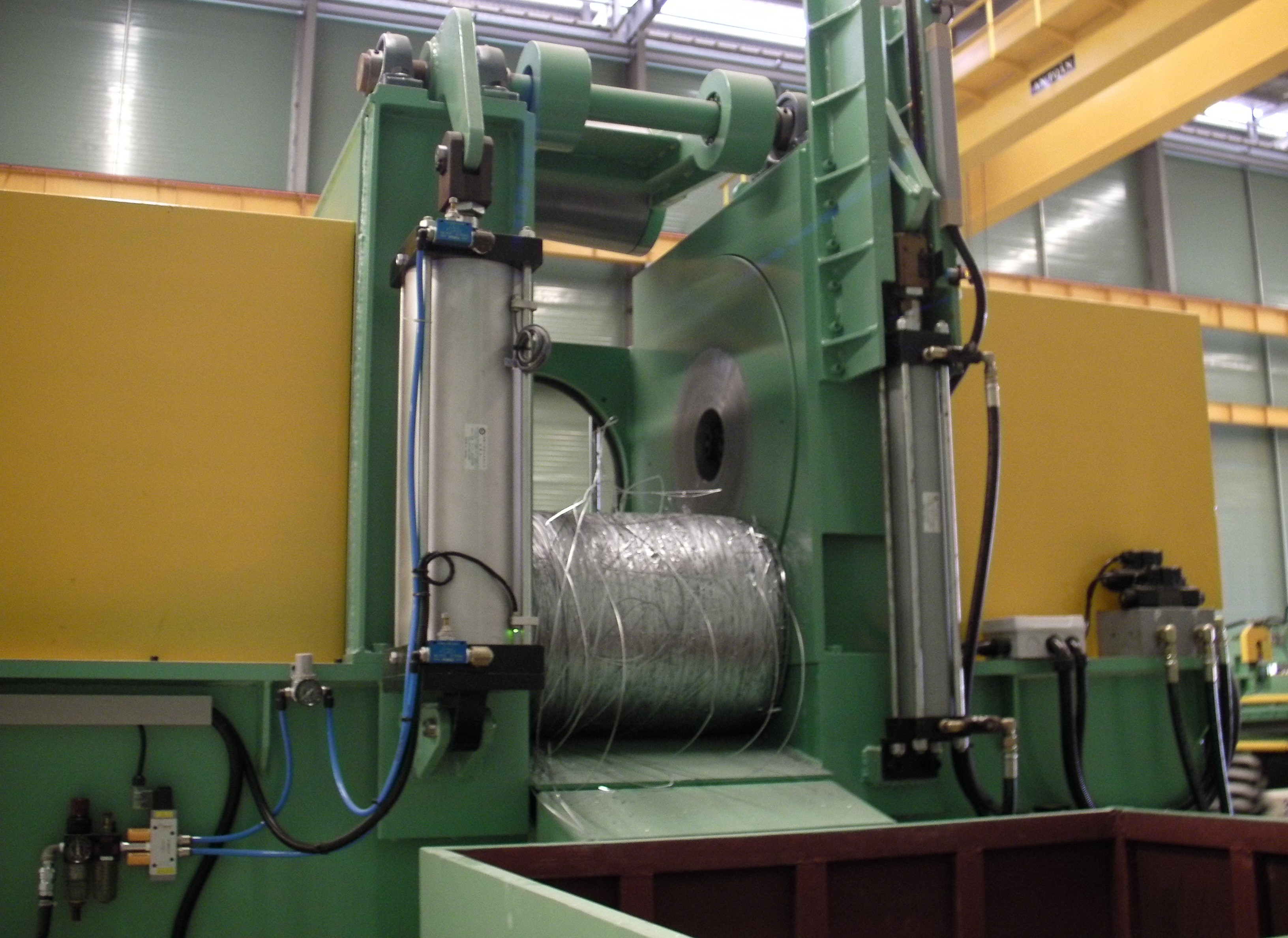 1. 在線廢料捲取機由伺服馬達控制,可以依據鋼捲不同的厚度和寬度自動調整需要的扭力和速度。
